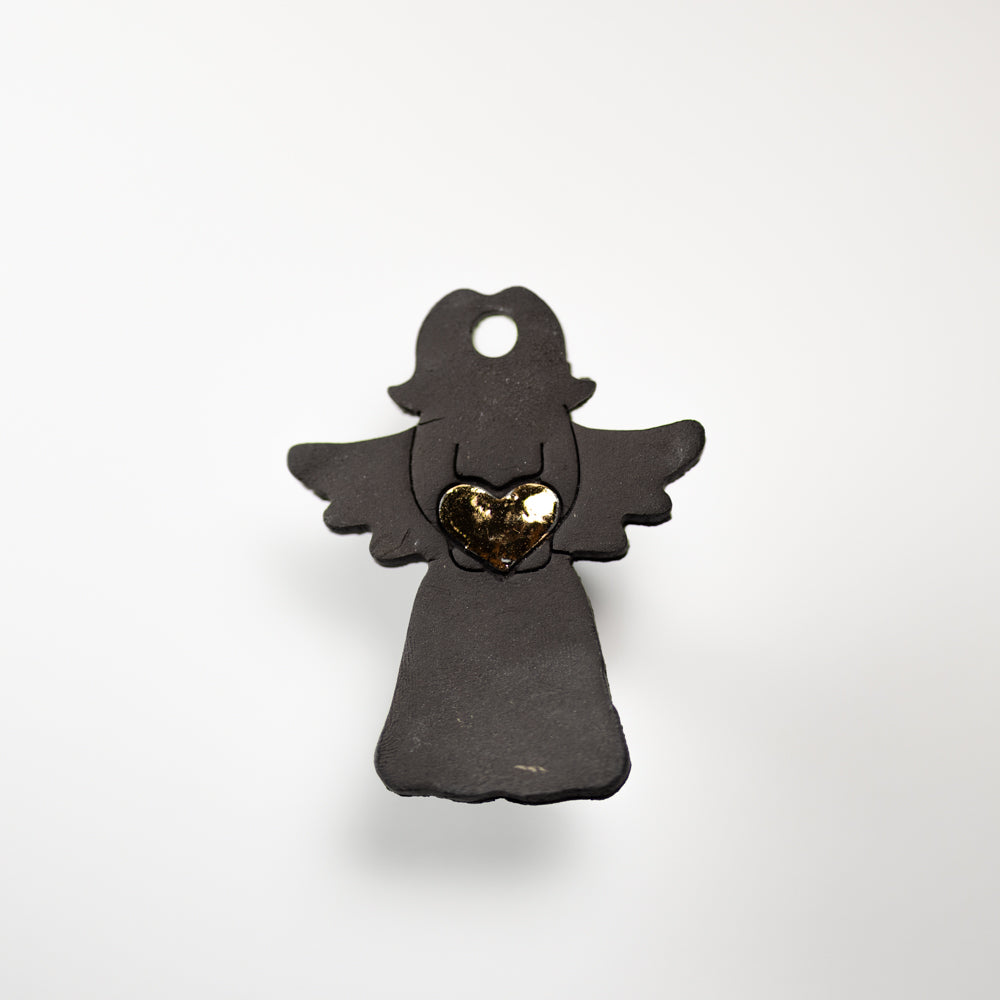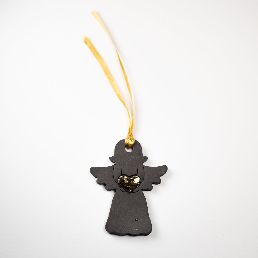 Handgemaakte kerstornament verfraaid met details in echt 22 karaat goud. Elk stuk is zorgvuldig vormgegeven in ruwe klei en uniek. Met de warme glans van het goud is het een schitterende toevoeging is aan elke kerstboom.