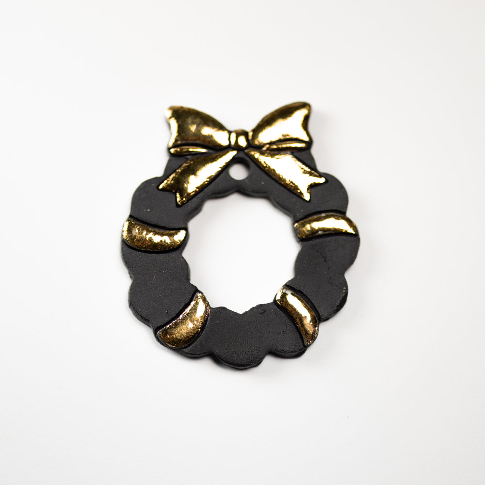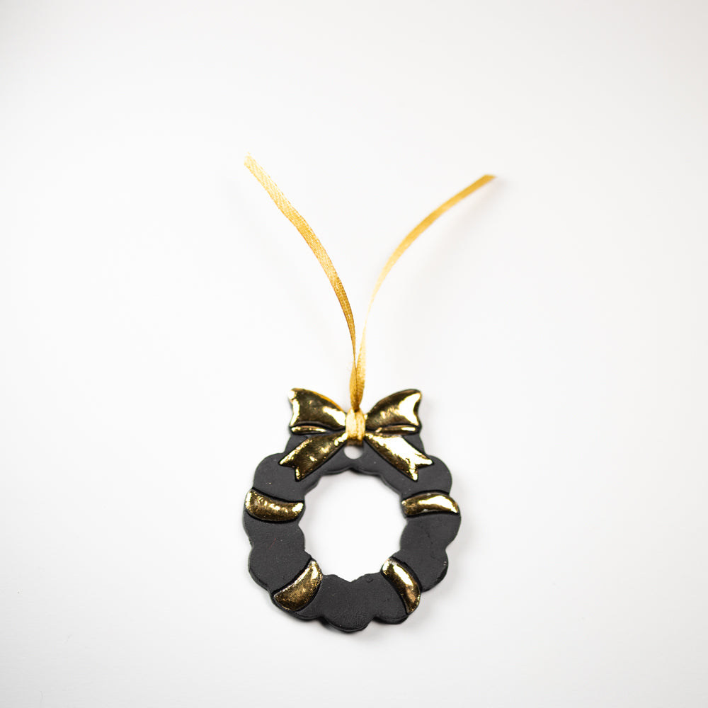 Handgemaakte kerstornament verfraaid met details in echt 22 karaat goud. Elk stuk is zorgvuldig vormgegeven in ruwe klei en uniek. Met de warme glans van het goud is het een schitterende toevoeging is aan elke kerstboom.