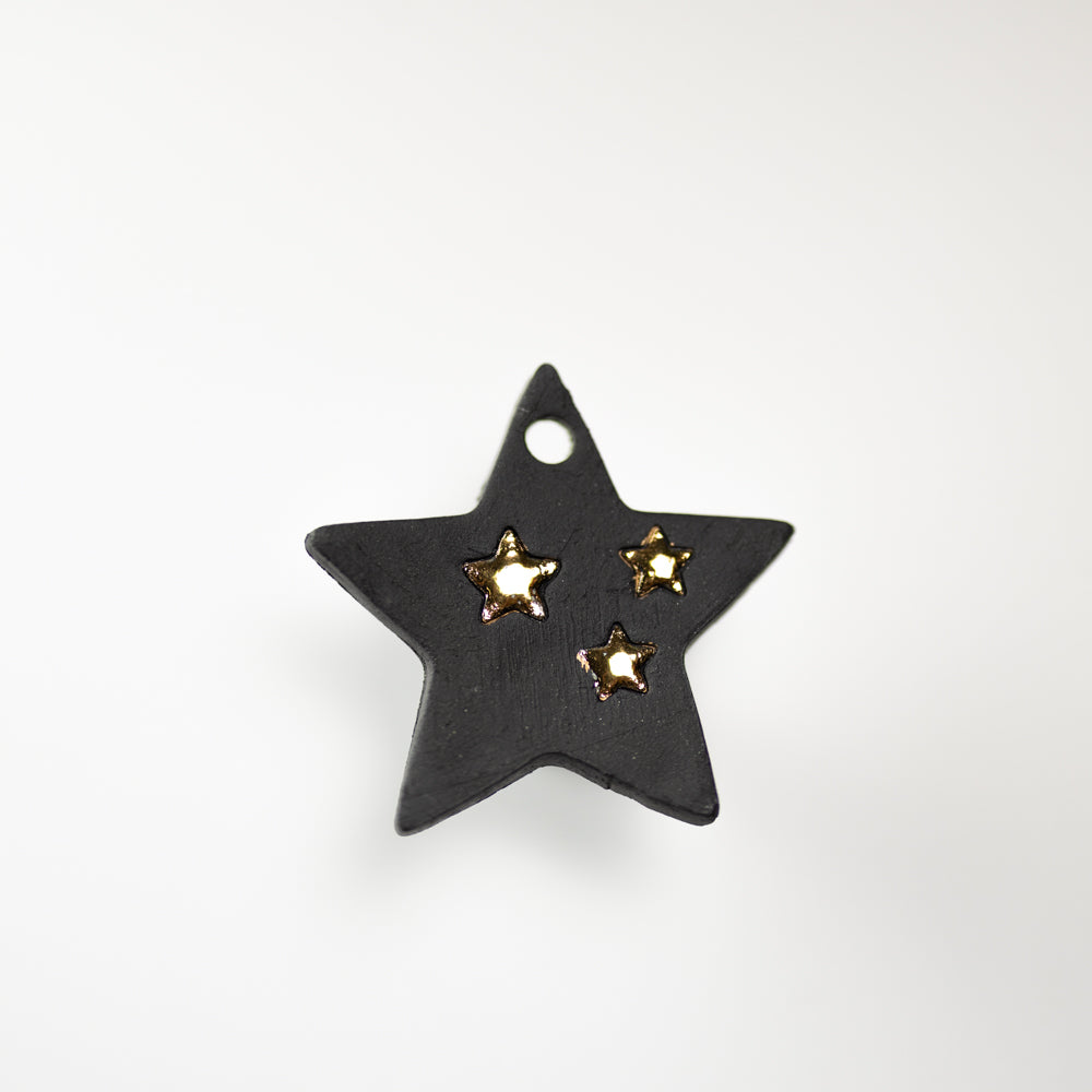 Handgemaakte kerstornament verfraaid met details in echt 22 karaat goud. Elk stuk is zorgvuldig vormgegeven in ruwe klei en uniek. Met de warme glans van het goud is het een schitterende toevoeging is aan elke kerstboom.